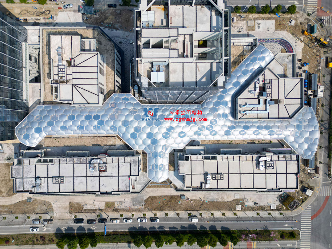 嘉興長安里ETFE氣枕鋼膜結構頂棚工程位于嘉興市長安里街區,該項目總用鋼量約440噸,ETFE膜結構展開面積約3200平米。