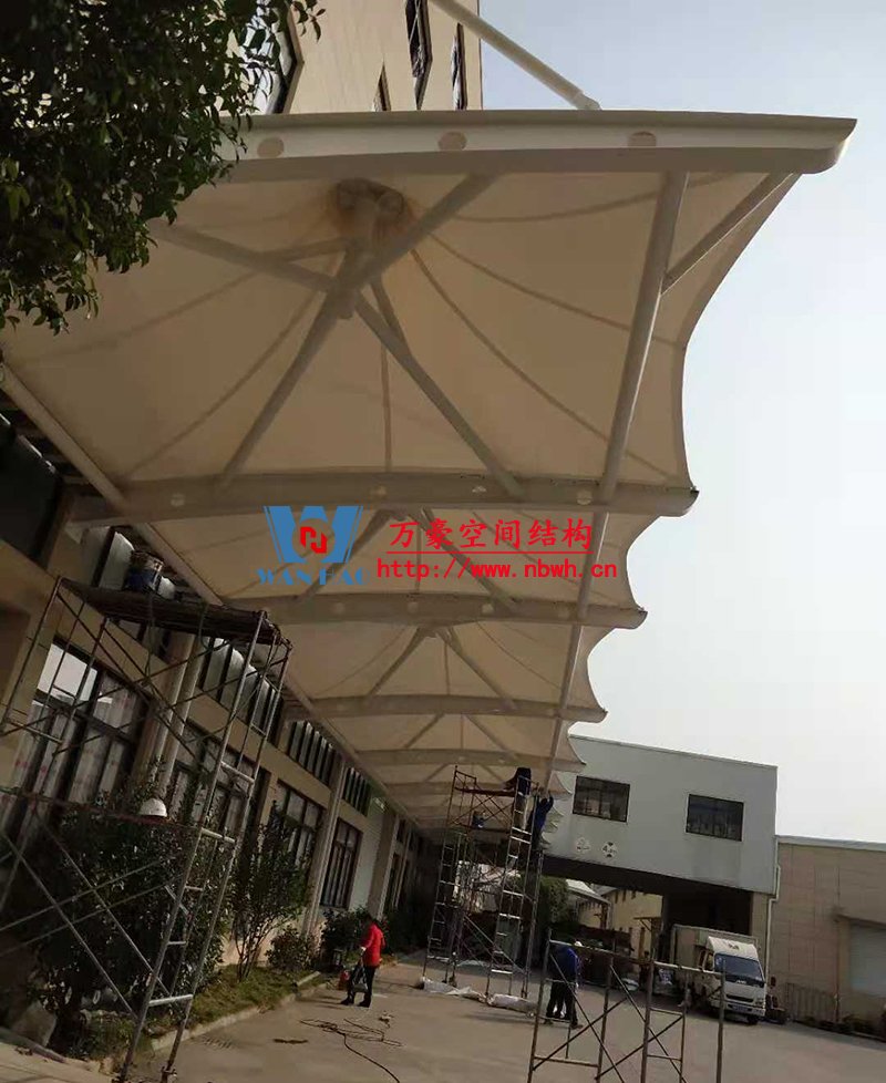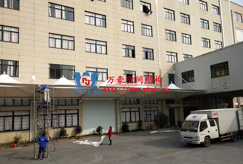 寧波中天家居膜結(jié)構(gòu)雨棚工程位于浙江省寧波市寧海縣,由寧波萬豪空間結(jié)構(gòu)工程有限公司承建。