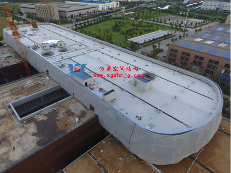 寧波菲仕展廳外立面網格膜結構項目,方案由意大利著名建筑師設計,設計靈感取鉆石之意。為了實現多變的設計效果,整個外立面采用了8000根形狀各異的鋼構件,每根桿件單獨編號、定位,實施難度極大。外層使用PTFE網格膜,樹立了PTFE網格膜使用的新標桿。用鋼量880噸,PTFE膜展開面積12660平方。