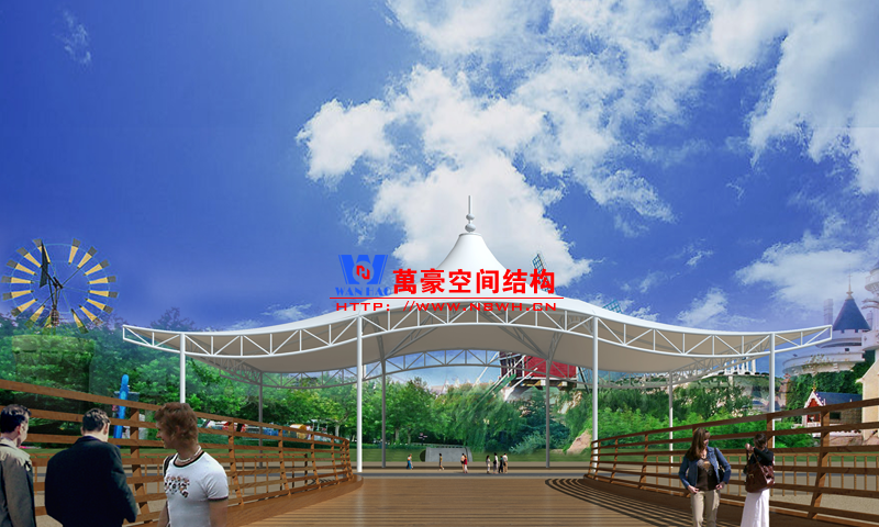 什么是出入口膜結(jié)構(gòu)?出入口膜結(jié)構(gòu)一般指的是應(yīng)用了張拉膜結(jié)構(gòu)的出入口建筑,比如小區(qū)崗?fù)ぁ④噹斐鋈肟凇⑹召M站等。出入口膜結(jié)構(gòu)體系由膜面、邊索、脊索、谷索、支承結(jié)構(gòu)、錨固系統(tǒng),以及各部分之間的連接節(jié)點等組成。以上是出入口膜結(jié)構(gòu)工程的設(shè)計效果圖,改天萬豪再給大家展示下實際案例。