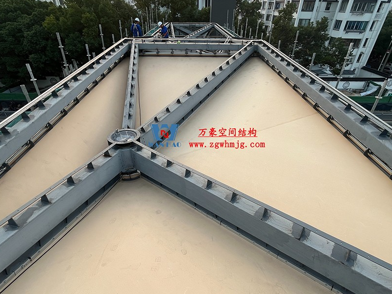 蘇州東環路人行天橋ptfe膜結構改造工程位于江蘇省蘇州市蘇州工業園內,該項目PTFE膜結構展開面積2000平米。