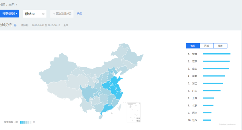 首先,從人群地域分布的數據看,我們可以發現中國膜結構網主要分布在華東地區,這個數據意味著什么呢?其實,人群地域分布可以代表著這塊區域膜結構行業相對比較成熟,大家有大項目的膜結構建筑工程時可以優先考慮華東區域的膜結構公司廠家,比如我們寧波萬豪膜結構。