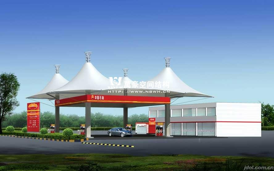 當(dāng)您乘車(chē)路過(guò)某條高速公路或城市大道時(shí),每隔一段路程就會(huì)有加油站進(jìn)入到您的眼簾,而這些建筑的大棚都是青一色的網(wǎng)架,沒(méi)有一點(diǎn)生機(jī),不妨用膜結(jié)構(gòu)來(lái)搭加油站大棚來(lái)沖擊一下您的視覺(jué)。