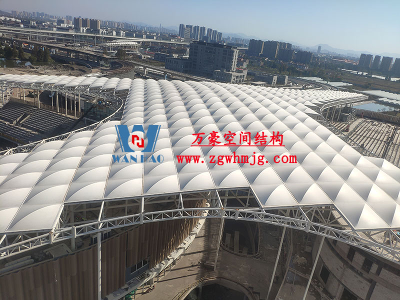 杭州亞運(yùn)會(huì)棒(壘)球體育文化中心項(xiàng)目位于浙江省紹興市,總建筑面積16萬(wàn)平方米、總投資約18億元。該項(xiàng)目頂部材料選用高自潔PTFE膜材,膜結(jié)構(gòu)展開面積合計(jì)20000平米。