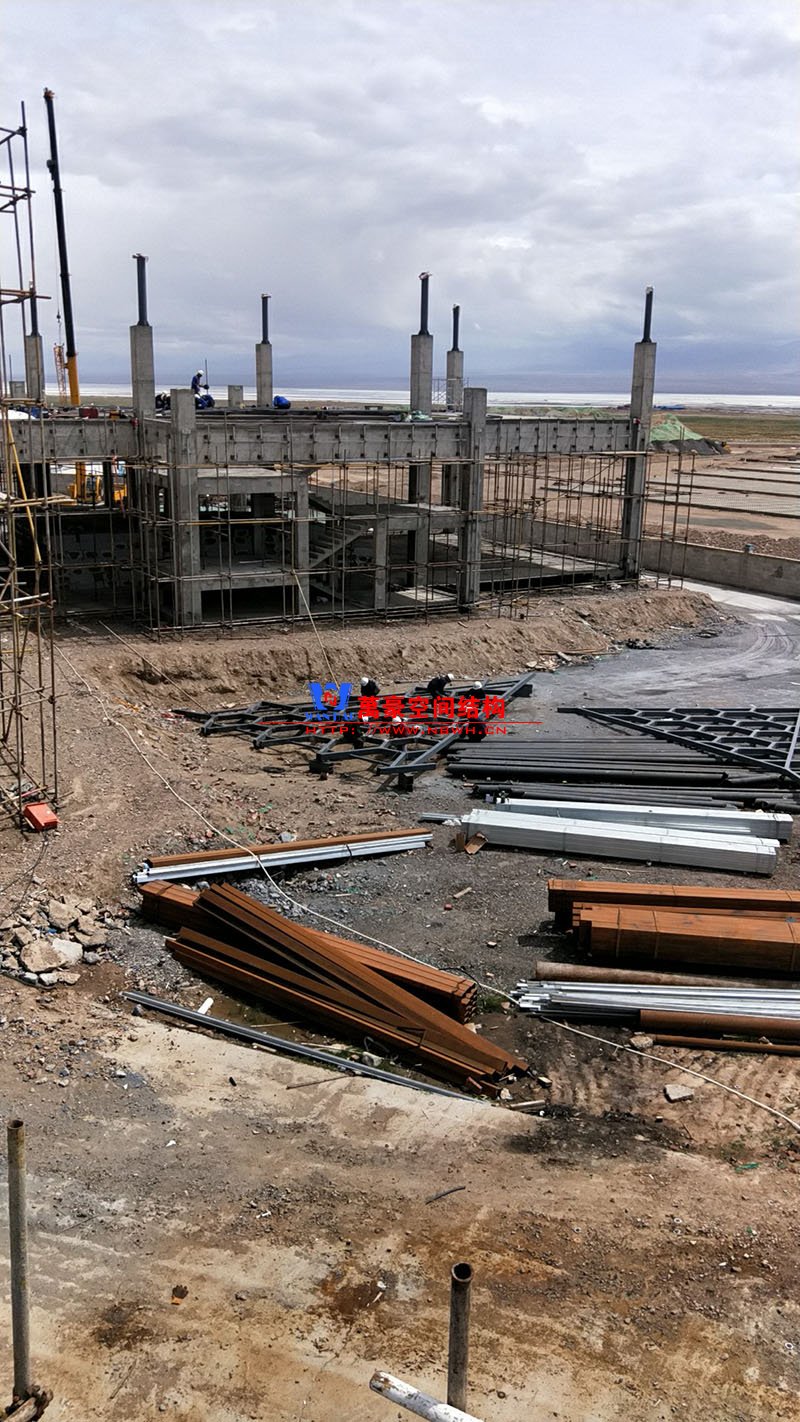 茶卡鹽湖景區(qū)膜結構項目是萬豪空間結構在大西北的第一個項目,目前正在緊張施工中。
