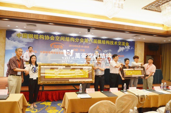2016年6月18日-20日,由寧波萬豪空間結構工程有限公司承辦的中國鋼結構協會空間結構分會膜結構專業委員會四屆一次會議和全國第八屆膜結構技術交流會在寧波東錢湖錢湖悅莊酒店勝利召開,屆時,邀請了浙江大學、上海同濟大學、北京工業大學等知名高校和中國建筑科學研究院、北京建筑設計研究院等知名研究院及知名企業的專家、教授、學者蒞臨參會。