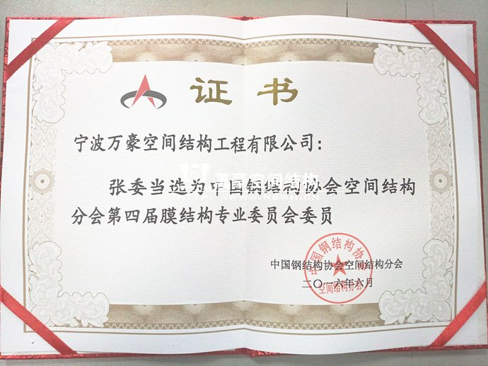 恭賀我司總經(jīng)理張委當(dāng)選膜結(jié)構(gòu)專業(yè)委員會(huì)委員