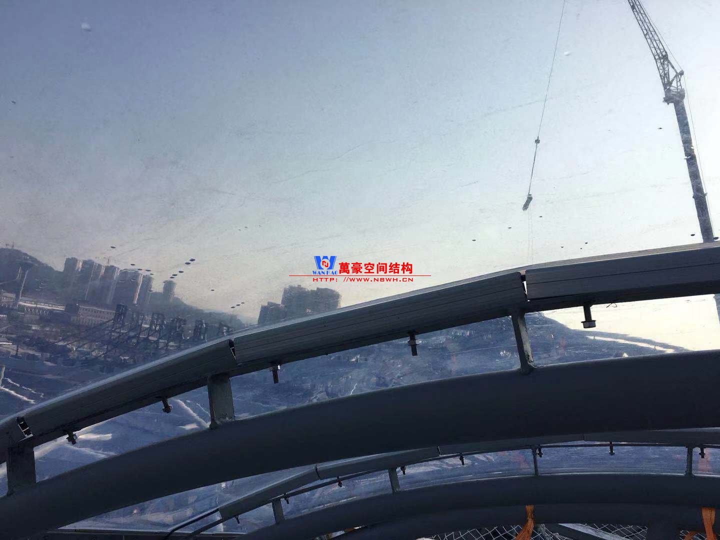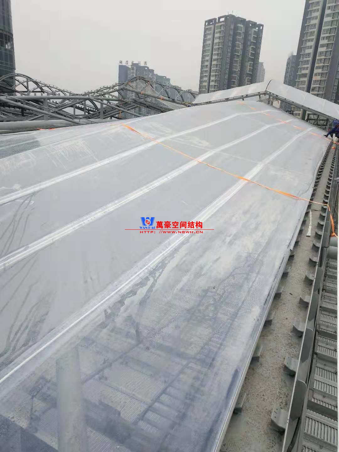 經過不斷的日夜加班,遵義高鐵新城天幕膜結構工程目前進入到膜材安裝階段。