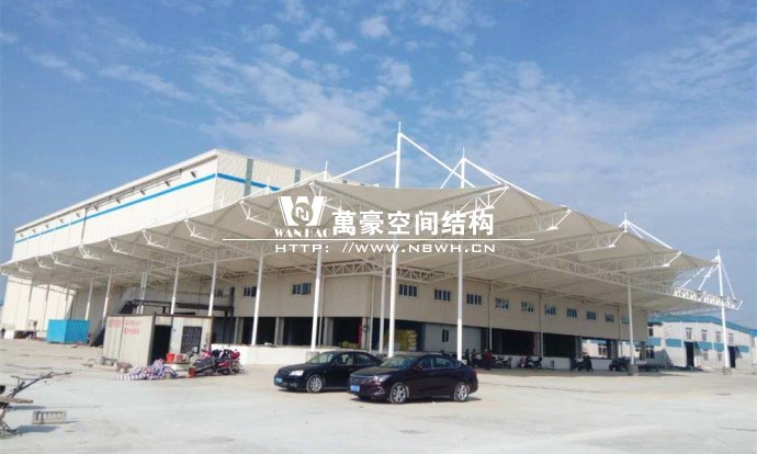嘉善索菲亞家居(浙江)有限公司膜結(jié)構(gòu)工程就位于嘉善縣的嘉善經(jīng)濟(jì)開發(fā)區(qū)隆全路上。整個(gè)項(xiàng)目總用鋼量達(dá)到了約120噸,膜布投影面積3000㎡。