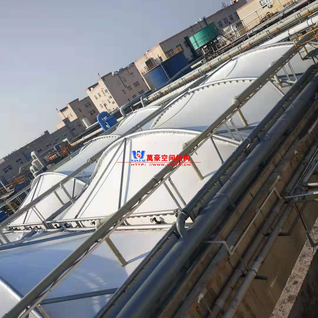 浙江東邦藥業有限公司污水池(好氧池)加蓋密閉膜結構工程位于浙江省臺州市臨海市東邦藥業有限公司內,此工程用鋼量50噸,膜結構展開面積2500平米,由寧波萬豪空間結構工程有限公司承建。