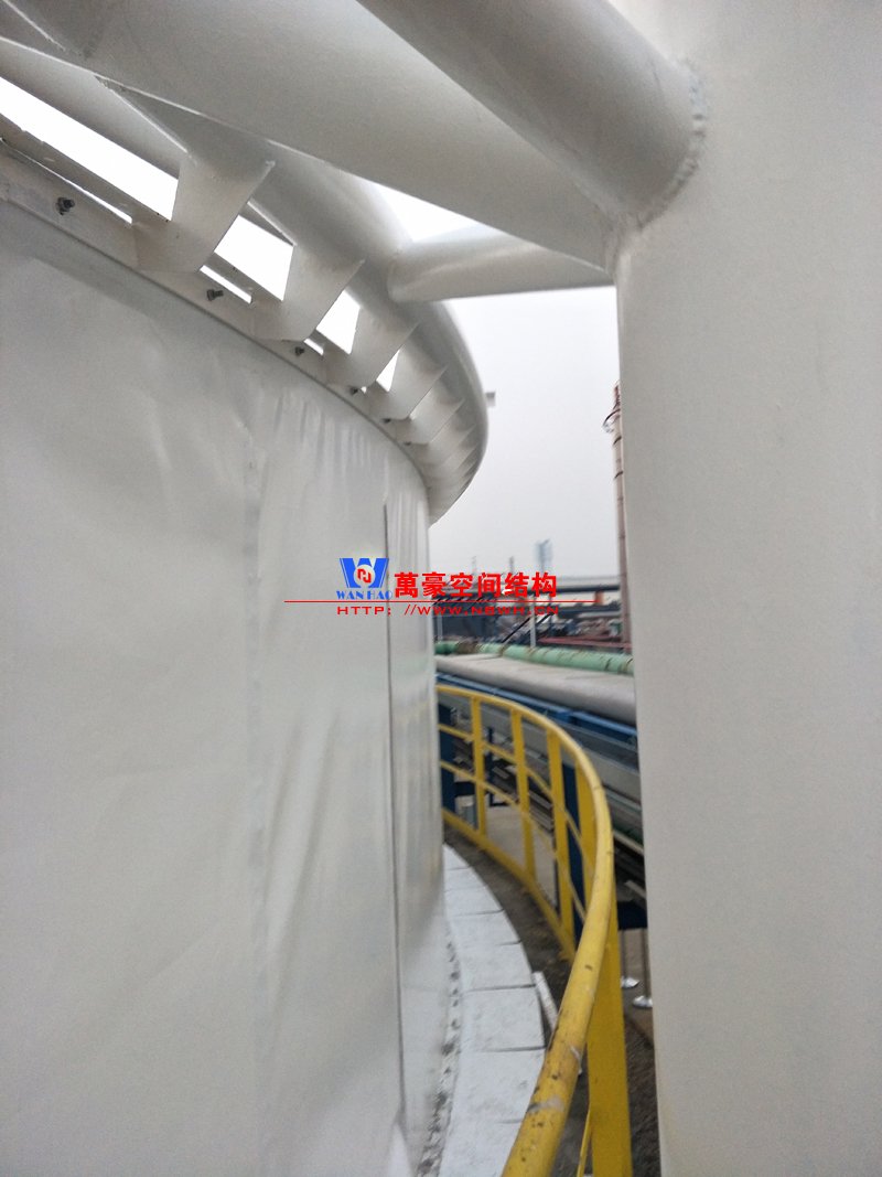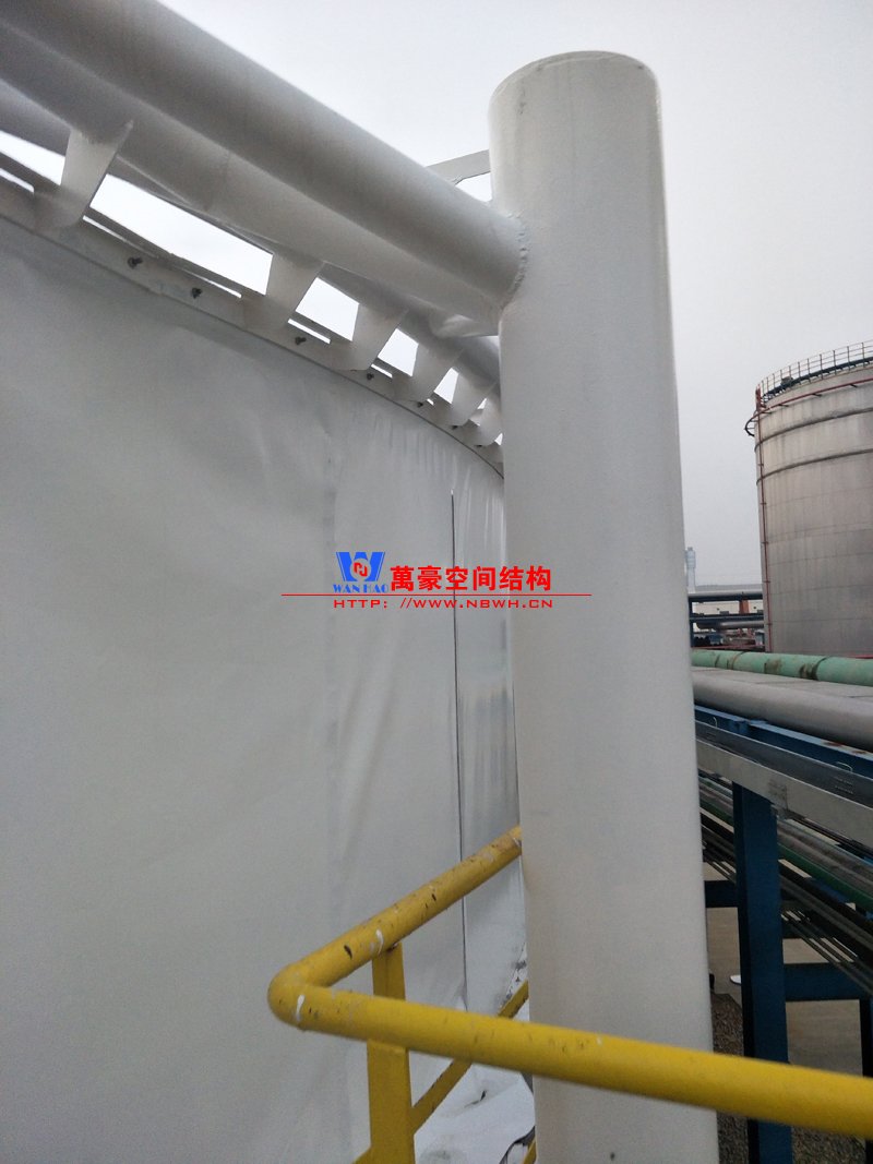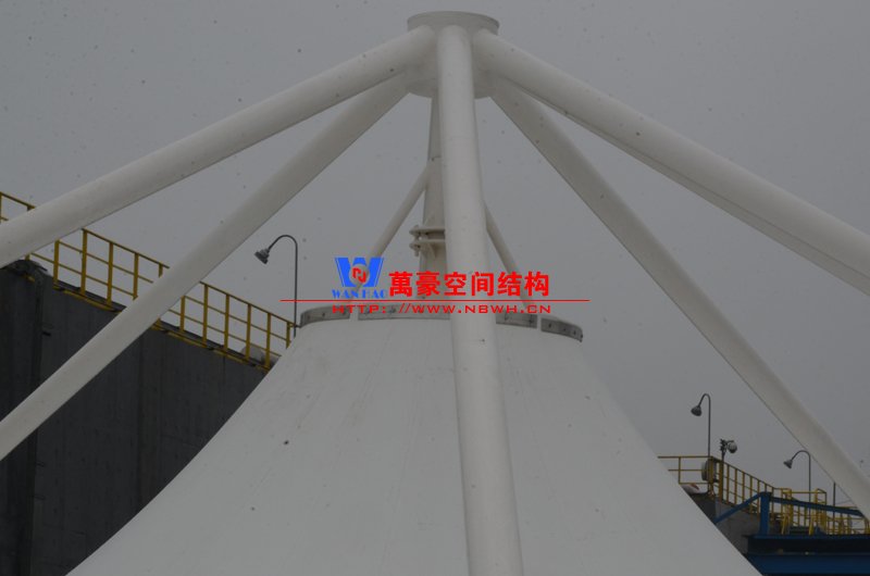 平湖衛星石化污水廠膜結構加蓋密封系統工程項目膜結構展開面積2000平米,用鋼量35噸,由寧波萬豪空間結構工程有限公司承建。